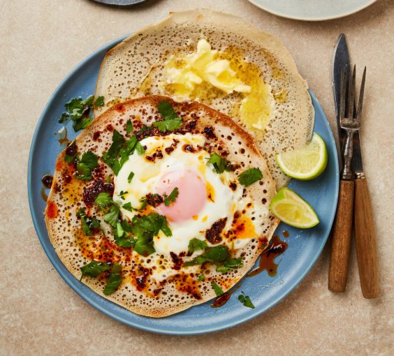 녹은 치즈를 얹은 구운 속을 채운 접이식 팬케이크; 계란, 고추, 라임을 곁들인 쌀 팬케이크; 감 설탕 에 절인 과일을 곁들인 크럼펫의 훌륭한 대안인 웨일스식 크렘포가우 계란과 고추기름을 곁들인 떡볶이이는 쌀을 불려서 발효시키고 종종 발효시켜 만든 나이지리아 팬케이크인 시나시르( sinasir )에서 영감을 받았습니다. 그들은 모든 주스를 흡수하도록 준비된 구멍이 있는 스펀지 같은 토핑으로 유명합니다. 쌀로 만들어지기 때문에 글루텐 프리를 선호하는 사람들에게 훌륭한 선택입니다. 자유롭게 토핑을 올려보세요. 저는 버터와 꿀을 곁들여 먹거나 수프나 스튜와 함께 곁들여 먹는 것도 좋아합니다. 준비 15분휴식 3시간 +요리 10분 팬케이크 8개를만들어 4 인분 제공팬케이크용단립 현미 210g 조리된 찹쌀또는 바..