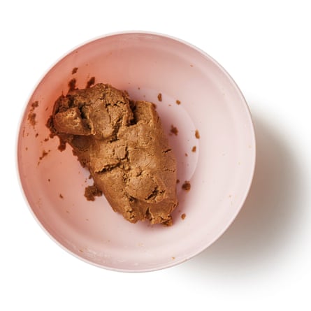 설탕과 버터가 섞일 때까지 저어준 다음 향신료 믹스, 밀가루 믹스, 우유를 넣고 균일하고 상당히 뻣뻣한 반죽이 될 때까지 섞습니다.