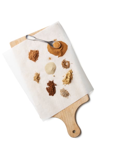 작은 그릇에 모든 재료를 섞어 향신료 믹스를 만드세요.