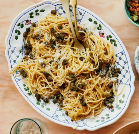 파스타가 요리되는 동안 프라이팬에 기름을 두르고 중간 불로 가열한 다음 케이퍼를 넣고 황금빛 갈색이 되고 바삭해질 때까지 5분간 볶습니다. 케이퍼를 퍼내고 키친 페이퍼를 깐 접시에 담아 물기를 뺍니다.