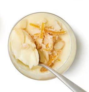 식힌 다음 굳을 때까지 최소 두 시간 동안 차갑게 식혀주세요. 냉장고에 냄새가 전혀 없는 경우가 아니라면 라미킨을 덮거나 밀봉된 용기에 넣어두는 것이 좋습니다. 그래야 조리하는 동안 다른 맛이 나지 않습니다. 이 시간. 아몬드를 마른 팬에 황금색이 될 때까지 구운 다음 설탕에 절인 껍질(또는 여분의 레몬 껍질)과 함께 포셋 위에 뿌려 서빙합니다.