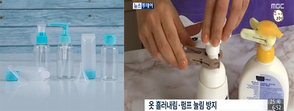 펌프형은 펌프사이에 빨래 집게를 꽂아 펌푸가 눌리지 못하게 방지