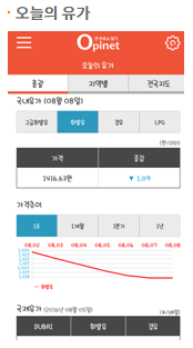 오늘의 기름값을 확인하여 주유 시점도 알 수 있습니다.