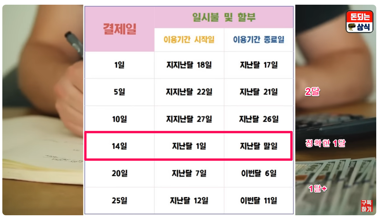 14일로 정하면 정확하게 1달 사용 금액으로 청구됩니다.