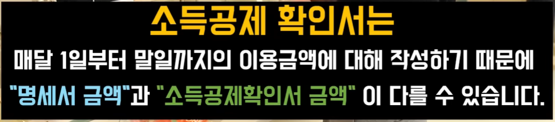 하지만 소득공제 확인서는 매달 1일부터 말일까지 이용 금액이므로 차이가 발생합니다.