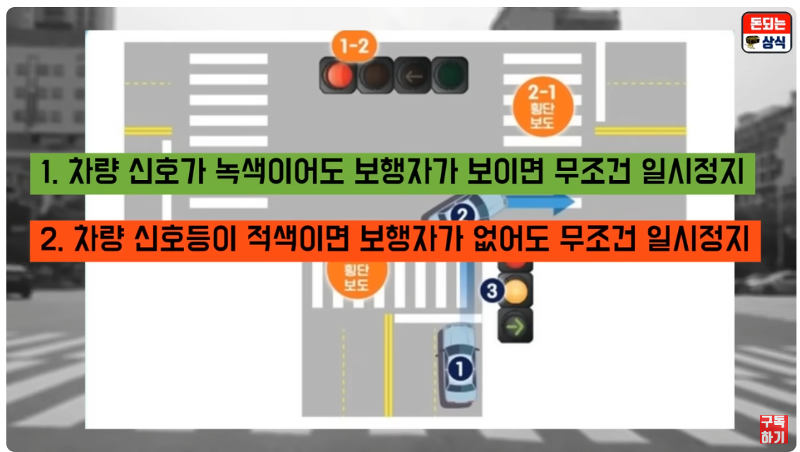 1. 차량 신호가 녹색이어도 보행자가 보이면 무조건 일시 정지