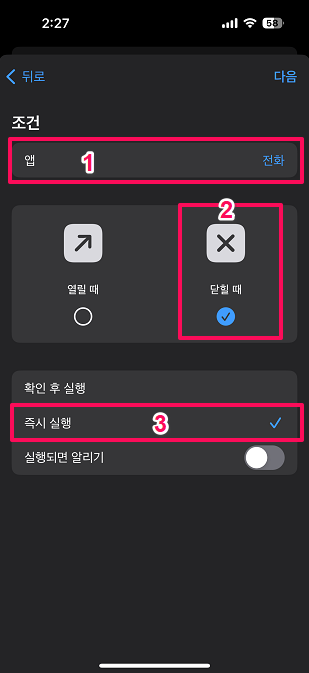 5. 단힐 때 / 즉시 실행