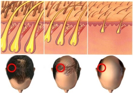 모낭이 약해지고 점차 점차 가늘어지고 빠지게 됩니다.