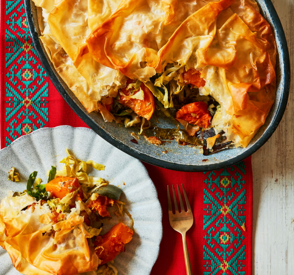 스틸턴 파이 이것은 실제로는 템플릿일 뿐이며 주변에 있는 모든 재료를 사용하여 즉흥적으로 연주할 수 있습니다. 재가열도 정말 잘됩니다(한번은 미리 구워서 다음 날 통째로 재가열했는데 정말 훌륭했습니다). 준비 20분 요리 1시간 10분 6 인분 전체 스쿼시 1개 (약 700-800g) – 왕세자, 붉은 쿠리 또는 버터넛 껍질을 벗기고 세로로 4 등분한 적양파 4개(약 500g) 소금과 후추 올리브 오일 3-4 tbsp 채소, 양배추, 콩나물 700g 또는 혼합물, 잘게 썬 무염버터 50g , 녹인 필로 페이스트리 270g 스틸턴 200g , 기타 블루치즈 오븐을 220C(200C 팬)/425F/가스로 가열합니다. 스쿼시를 3-4cm 크기로 자르고 퍼내서 씨를 버립니다. 스쿼시 조각을 베이킹 트레이에 양파..