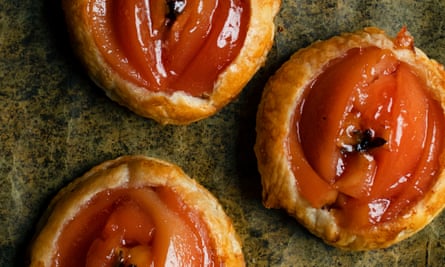 모과가 피한다면 디저트 사과를 사용하여 과일 조리 시간을 20-25분으로 줄이세요. 6개 만들기 모과: 설탕 100g 물 1.5리터 모과 3 레몬 1 페스트리 크림: 우유 325ml 바닐라 추출물 1티스푼 흰설탕 50g 계란 노른자 4 옥수수가루 2큰술 타르트: 퍼프 페이스트리 320g 계란 조금 베이킹 시트 2개가 필요합니다. 하나에는 베이킹 양피지가 깔려 있습니다. 시럽 만들기: 냄비에 설탕과 물을 넣고 끓입니다. 모과를 껍질을 벗기고 반으로 자릅니다. 코어를 제거하고 자른 레몬으로 문지릅니다. 모과를 시럽에 넣은 다음 불을 낮추어 끓입니다. 부드러움을 테스트하되 25~40분 정도 걸릴 것으로 예상하세요. 팬에서 꺼내어 시럽에 넣어 식혀주세요. 페이스트리 크림 만들기: 우유를 거의 끓을 때까지 끓인 ..